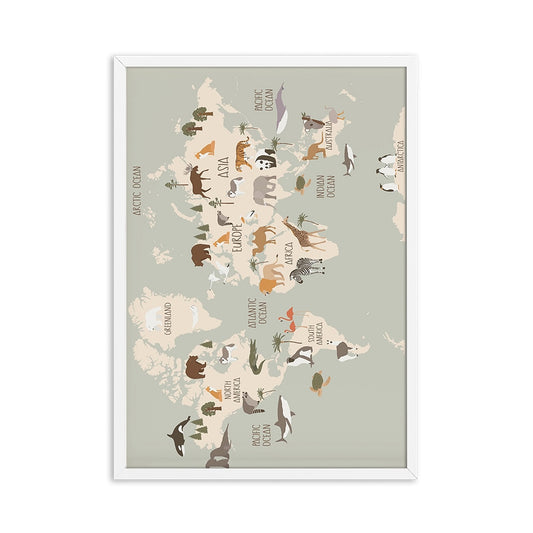 Animal World Map Nursery Wall Art Canvas